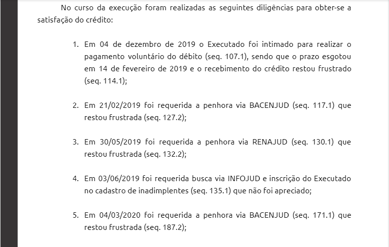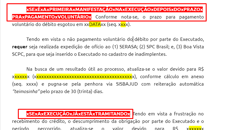2B) Caso o modelo já tenha sido utilizado anteriormente, deve-se atualizar a petição informando a última diligência requerida e pedindo por uma nova tentativa de penhora, respeitando a ordem de pedidos constantes no modelo original.