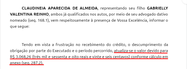 2C) Preenchidos todos os requisitos acima, e, após a atualização do valor por meio do sistema Agnesi (Verificar o Tutorial "Atualização de Cálculo"), deve-se alterar na petição o valor do débito (informando o novo valor) e organizar os anexos, de acordo com o processo.